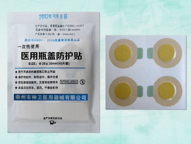 機構(gòu)性能: 醫(yī)用瓶蓋防護貼(商品名:醫(yī)用瓶蓋貼)由醫(yī)用膠帶、涂壓敏膠的PVC膜或PE膜,吸水墊和硅油紙組成。本品為無菌產(chǎn)品。 使用范圍: 適用于阻止輸液瓶蓋口受污染。 型號規(guī)格:28x16mm 使用方法: 1.打開紙盒,取出瓶蓋貼一張。 2.從硅油紙上逐漸一撕下瓶蓋貼。 3.將瓶口貼粘貼在已經(jīng)消毒過的輸液瓶口上。 4.待輸液瓶需要更換時,撕下瓶蓋貼,即可插入輸液針頭繼續(xù)輸液。 注意事項: 1.本品為無菌產(chǎn)品,內(nèi)包裝破損,嚴禁使用。 2.使用瓶蓋貼時,不得將手指與吸水墊接觸。 3.本品為一次性用品,用后即銷毀,嚴禁二次使用。 4.自滅菌之日起,有效期二年。 貯存: 存放于干燥通風處,謹防受潮,不宜與有毒或有特殊氣味的物品一起存放,避免直接與火源易燃物和腐蝕物接觸。 有效期:經(jīng)E0滅菌后二年(其他滅菌方法按相關標準規(guī)定) | |